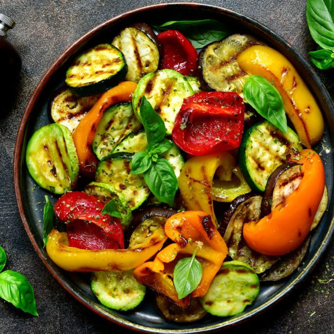 Composition : Mélange de salades, tomate séchée, concombre, olive noire, bille de mozzarella, du chèvre pané, vinaigrette citronnée et poulet grillé à la provençale